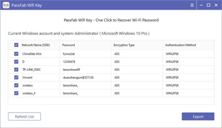 Téléchargez, installez et exécutez PassFab Wifi Key sur n'importe quel ordinateur Windows ou tablette Surface accessible. Une fois le programme ouvert, il affichera le mot de passe Wi-Fi de chaque réseau.
