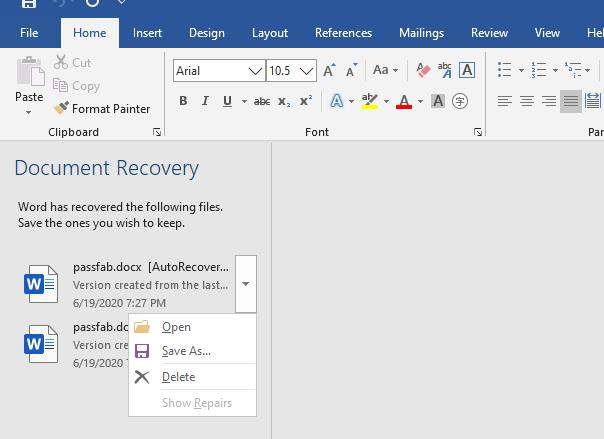 Les applications Microsoft Office vous permettent de récupérer des fichiers précédemment ouverts après un plantage. Ainsi, si votre document Word s'est écrasé de manière inattendue et que vous ne l'avez pas enregistré au préalable, le volet de récupération des documents vous permettra de récupérer votre document Word non enregistré.
